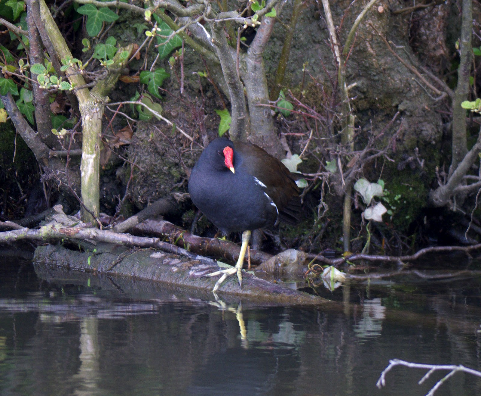 In one of the smaller bays, I came across a more open area of water, with less pondweed and noticed a couple of shadows gliding in and out of the nearby coverage, one of those being an orange and black koi, it certainly did not seem too shy. The darker shadow next to it belonged to a common carp, perhaps they were paired up for a bit of springtime lovey dovey?